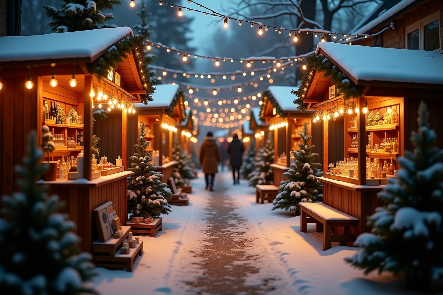 - Holzbuden: Sie verleihen deinem Weihnachtsmarkt einen rustikalen Charme.