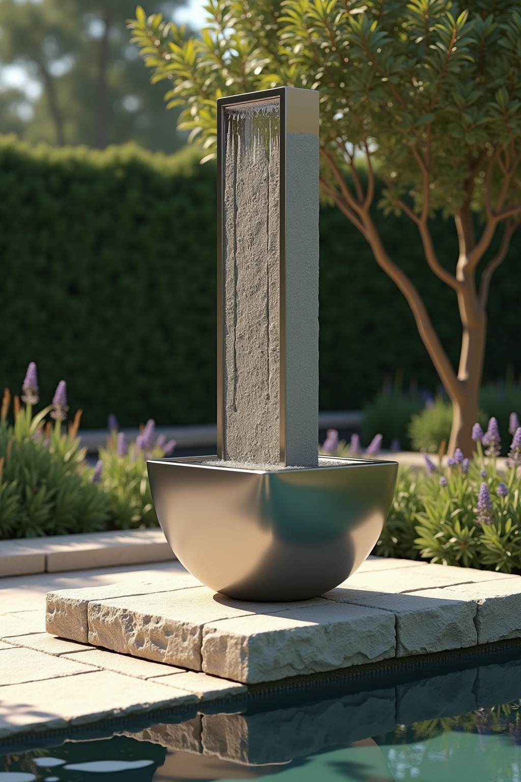 Material und Stil: Achten Sie auf eine harmonische Abstimmung zwischen dem Material der Wassersäule (Edelstahl, Naturstein, Keramik) und dem bestehenden Gartenstil.